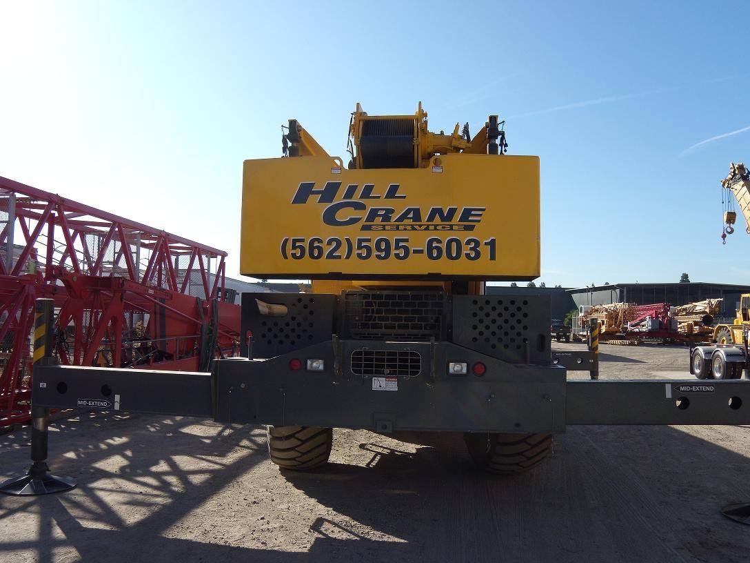 The Grove RT-890E features a 90-short ton capacity and a long 142 ft boom, offering high lifting power in off-road conditions. Its MEGAFORM boom design and advanced hydraulics ensure stability and smooth operation in tight spaces.
